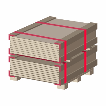 Beim Verpacken von Plattenmaterialien wie Pappe, Paneelen und Trockenbauwänden wird der Abzieher an der schützenden Ecke der Pappe angebracht. Dies verhindert, dass sich die mit Umreifungsband verpackten Ecken verbiegen und fixiert die Bleche sicher auf der Palette bzw. Paletten.