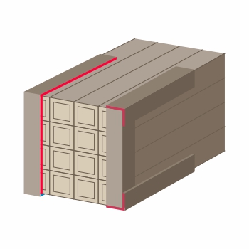 Beim Verpacken von Bogenware spielen auch die Pappwinkel eine wichtige Rolle – sie bilden den Rand des Pakets und schützen die Ware von allen Seiten. Entlang jede Gruppe von Platten sind Pappwinkel angebracht, die eine Beschädigung der Kanten der Ladung während des Transports verhindern. Die Verpackungswinkel haben in diesem Fall nicht nur eine Schutzfunktion, sondern halten die Ware auch zusammen und fixieren sie sicher in einem stabilen Rahmen.