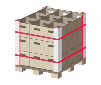 The moisture-proof corner is used, particularly, when packing vegetables and fruit, ice-cream and other frozen products, that includes storage and transportation in refrigerators, different changes of temperature regimes and in conditions of high humidity.